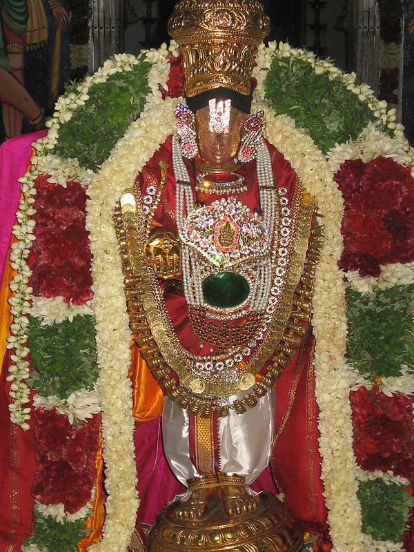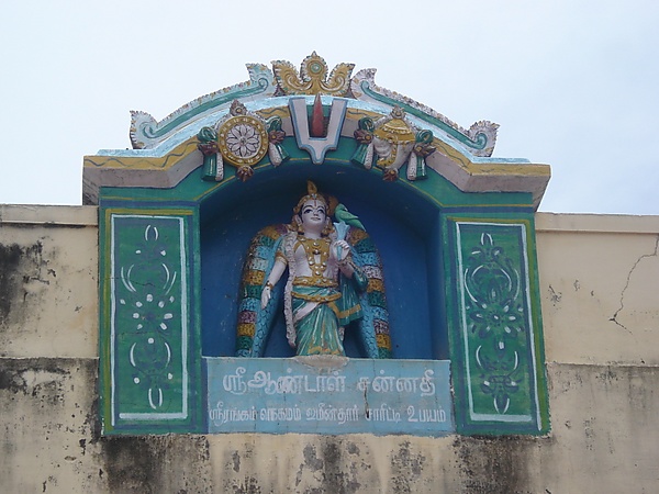 С торжественной процессией он сопроводил шестнадцатилетнюю Андаль в свадебном паланкине в храм Ранганатхи в Шрирангаме. Молва гласит, что когда Андаль вошла в святилище, она села возле стоп Вишну, где всегда находится Лакшми, и растворилась. С тех пор её зовут «Андаль», то есть «та, кто правит [богом]», ведь она покорила сердце Вишну как никто другая — ни до, ни после неё[3].