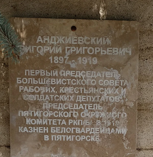 На месте казни в 1939 г. поставлен обелиск по проекту Б. П. Светлицкого с мемориальной доской: «Здесь 31/VIII 1919 г был казнен белогвардейцами организатор и руководитель Советской власти в г. Пятигорске Г.Г. Анджиевский»[11].