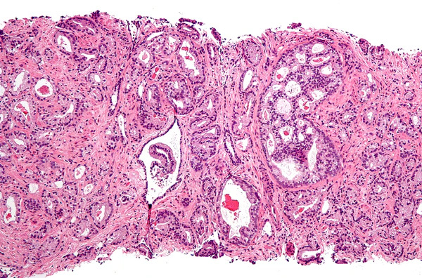 Для развития и целостного функционирования предстательная железа нуждается в андрогенах. Врождённая дисфункция андрогенового рецептора или 5-альфа-редуктазы у мужчин приводит либо к полному отсутствию, либо лишь к минимальному развитию предстательной железы. То же самое верно и для самцов других животных. Через неделю после кастрации предстательная железа самца крысы подвергается дегенерации из-за апоптоза эпителиальных клеток (после удаления семенников уровень андрогенов недостаточен для поддержания целостности простаты). Андрогены также относятся к факторам, стимулирующим развитие рака предстательной железы. Изучение евнухоидных индивидуумов показало, что у них простата остаётся маленькой и не подвергается гипертрофии или злокачественному перерождению. Более того, в животных моделях канцерогенеза в предстательной железе необходимо наличие семенников или экзогенных андрогенов для поддержания развития опухоли. У трансгенных мышей с повышенной экспрессией AR в простате клетки эпителия простаты обновляются гораздо быстрее, чем в норме, и простатическая интраэпителиальная неоплазия (злокачественное новообразование) у таких мышей появляется значительно раньше. Хотя необходимость андрогенов для развития рака простаты не вызывает сомнений, сложно установить связь между относительным уровнем андрогенов в крови и риском развития рака простаты. Для объяснения различий в частоте возникновения и степени выраженности рака простаты были предложены расовые различия в уровне циркулирующих в крови андрогенов. Впрочем, данные по связи между уровнем андрогенов в крови и риском развития рака предстательной железы весьма противоречивы, и окончательного решения по этому вопросу нет. Возможно, противоречивость данных объясняется варьирующей активностью андрогеновых рецепторов, которая может играть исключительно важную роль в развитии рака простаты[14].