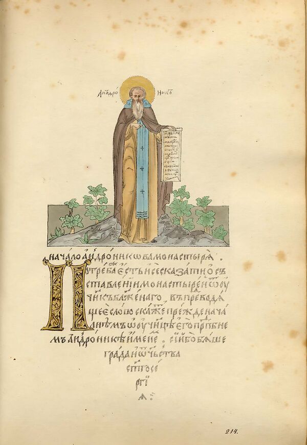 Безмолвие от юности возлюбив, / на гору Маковец пришел еси, Андрониче блаженне, / обитель общаго жития устроил еси в земнем граде Москве, / во обители Небеснаго града ныне ликовствуеши, / молися Христу Богу / спастися душам нашим.