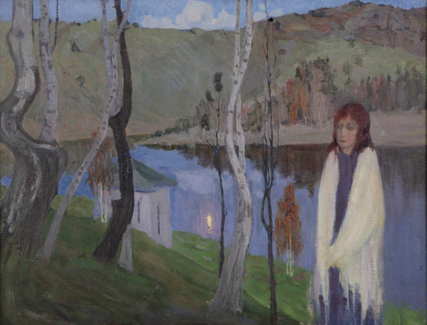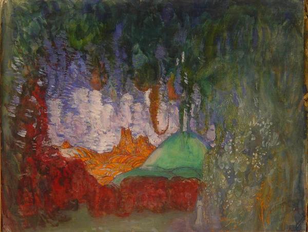 Как живописец известен также образами сказочных грёз и феерий (Восточная легенда, 1905, Третьяковская галерея; Волшебное озеро, 1914, Русский музей); художник стремился к особой, ирреальной передаче цвета.