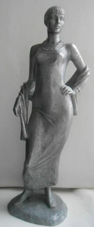 Скульптура изображает женщину в полный рост. Длинное платье облегает фигуру. Правая нога слегка согнута в колене и отставлена в сторону. На плечах накинут шарф. Одна рука лежит на талии, а другая, поддерживая шарф, согнута в локте и опущена вдоль туловища. Глубокий вырез подчёркивает шею, украшенную ниткой бус. Голова слегка повёрнута влево. Короткие волосы и густая чёлка закрывают лоб.