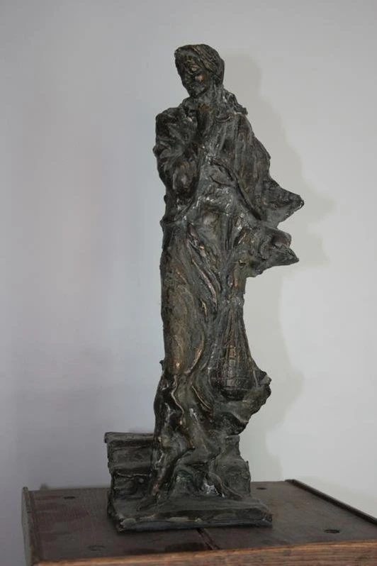 Статуэтка изготовлена методом литья из бронзы с применением патины. Литьё позволяет точно воспроизвести все детали, а патинирование создаёт характерный цвет.