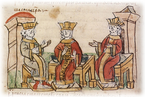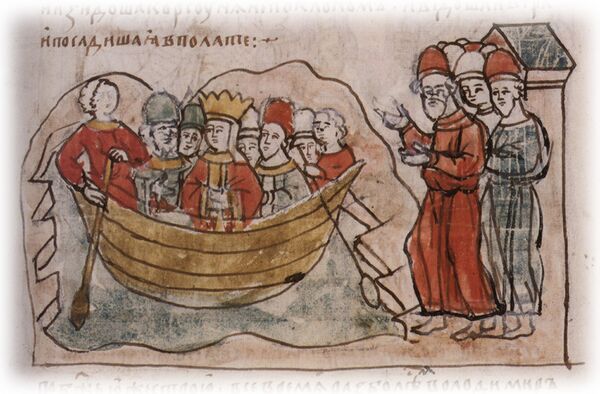 «Женщина воспротивилась отдать себя тому, кто расходится с нею в вере. Начались об этом переговоры, которые закончились вступлением царя русов в христианство»[14].