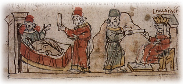 «В том же году[7] царь Василий отправил его [митрополита Севастии] в страну Булхаров водворить мир. Булхария просила царя Василия отдать сестру свою замуж за её царя. Император в сопровождении митрополита отправил какую-то женщину из своих подданных, похожую на сестру свою. По прибытии той женщины в страну Булхаров, узнали кто она, и потому осудили митрополита как прелюбодея и обманщика; цари булхарские сожгли его, обложив хворостом и соломой.»[8]