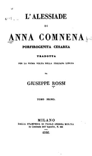- Анна Комнина. Алексиада. – 3-е изд., исправ. и доп. – Санкт-Петербург: Алетейя, 2010. – 750 с. – (Византийская библиотека. Иcточники). ISBN 978-5-91419-301-7
