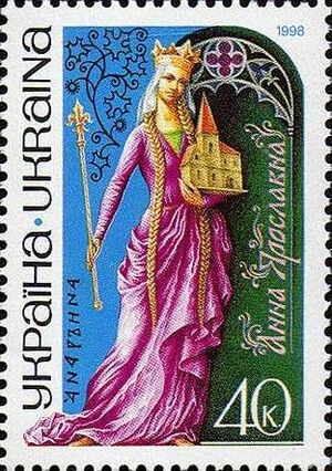 - ↑ Union des Ukrainiens de France. Cérémonie en l'honneur de la. Reine Anne de Kyïv (фр.) // L'Est européen. — 1997. — Vol. 245—248. — P. 6.