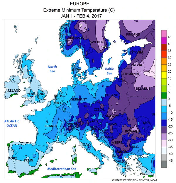 Аномальные морозы в Европе (январь 2017)