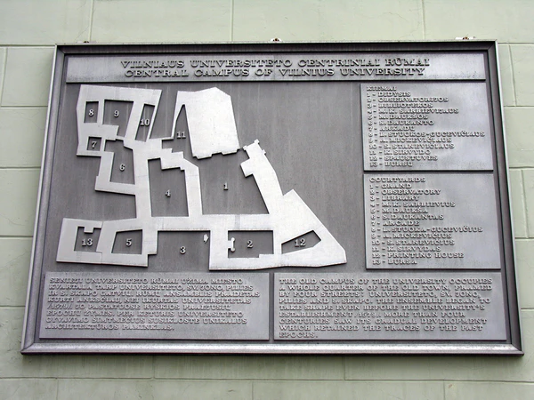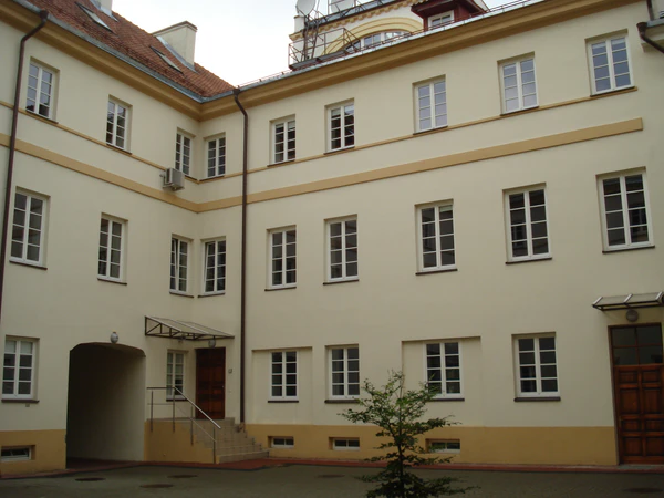 На трёхэтажном здании исторического факультета мемориальная таблица в память проживания в Вильне украинского поэта Тараса Шевченко, жившего и творившего в Вильне в 1829—1831 годах. Живя в Вильне, он брал уроки рисования у жившего в этом здании художника Яна Рустема.