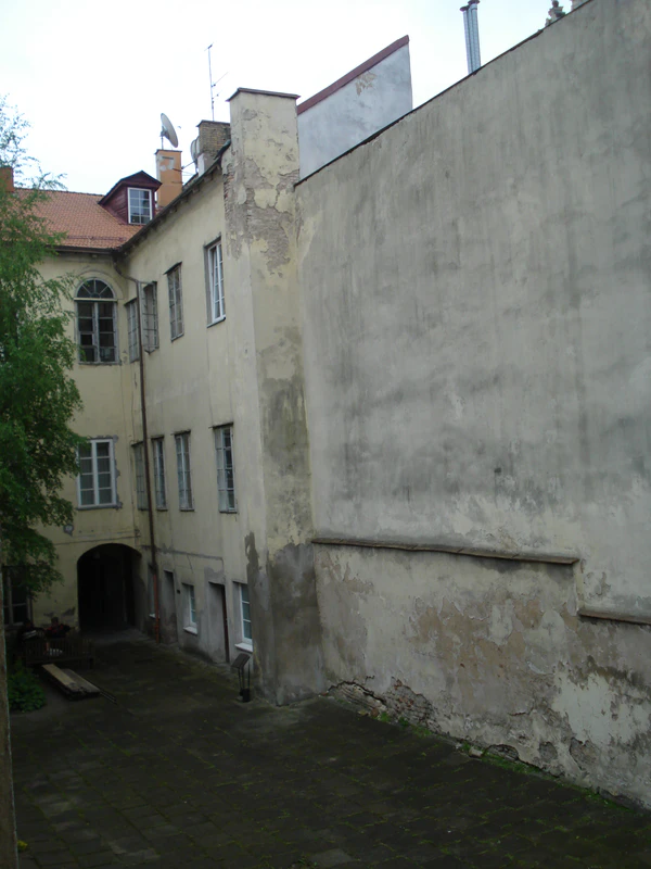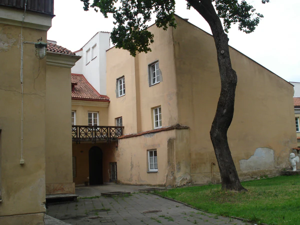 Выходящий на Замковую улицу (ныне улица Пилес) длинный двухэтажный дом и хозяйственные постройки в глубине двора относятся к рубежу XVI—XVII веков. По проекту архитектора Левицкого в 1873 году здания коридорами второго этажа были соединены с корпусами ансамбля Вильнюсского университета. Фасады двора с деревянными балконными галереями обновлены в 1966—1968 годах по проекту архитектора Станисловаса Микулёниса.