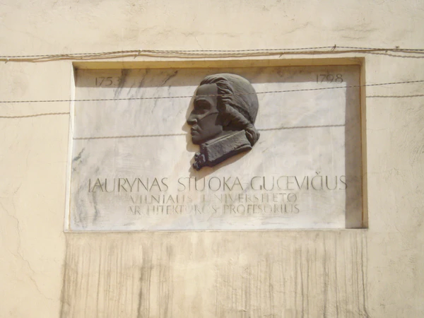 Двор Л. Стуоки-Гуцявичюса (лит. L. Stuokos-Gucevičiaus kiemas) назван именем воспитанника и преподавателя Вильнюсского университета (в то время Главная школа Великого княжества Литовского) Лауринаса Стуоки-Гуцявичюса, выдающегося представителя архитектуры классицизма в Литве.