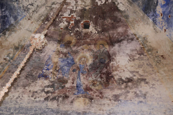 Рёбра свода были подчеркнуты живописными орнаментальными тягами. На восточном лотке было написано «Вознесение», на северном и южном располагались группы апостолов, на западном — сцена «Коронования Богоматери». В алтаре свод отделялся лепным карнизом (как и в первой церкви). По сторонам центрального окна располагались надписи «Богоматерь» и «Христос».
