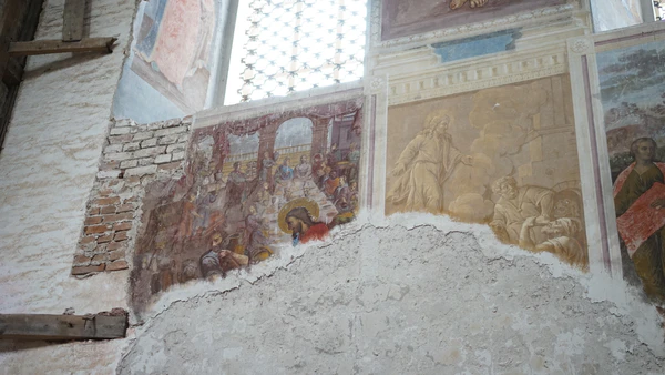 - самый нижний ярус представлен сценами «Воскресение» (южная стена) и «Вознесение» (северная стена).
