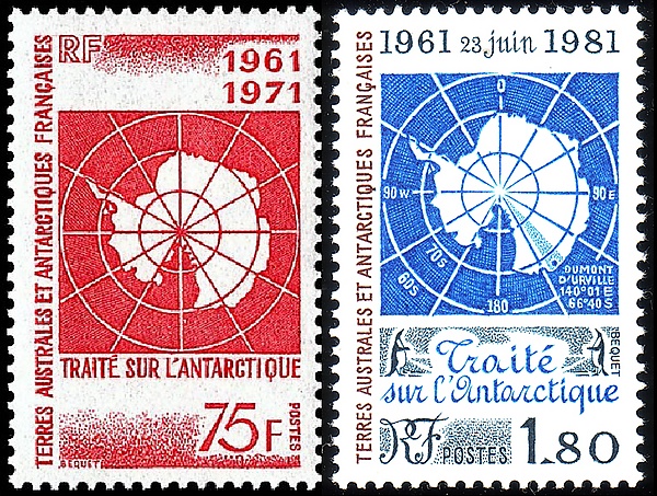 В соответствии с Договором об Антарктике, вступившем в силу с 23 июня 1961 года, все земли южнее 60° ю. ш. не могут принадлежать ни одному государству, демилитаризованы и безъядерны[2]. Однако, несмотря на его подписание и ратификацию, ряд государств трактует экстерриториальность Антарктики лишь как «замораживание» своих территориальных претензий на континент и прилегающее пространство, но не как отказ от них. Соответственно, они выпускают для «своих» территорий специальные знаки почтовой оплаты либо периодически освещают тему своих претензий (например, публикуют географические карты) на обычных почтовых марках[3]. К этим странам относятся: