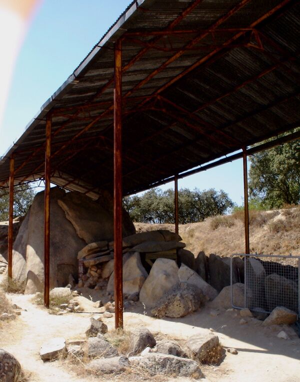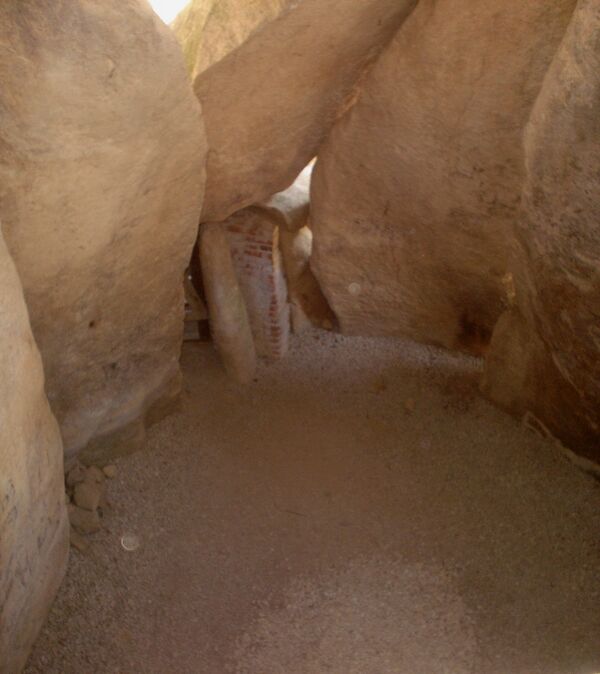 Камера многоугольной формы состоит из семи крупных камней, которые поднимаются 8 м над землей. Первоначально она была покрыта 7 м широким камнем. Камера переходит в коридор, который составляет 12 м в длину, 1,5 м в ширину и 2 м в высоту, коридор до настоящего времени покрыт камнем на большей части своей длины. Вход был отмечен большим украшенным менгиром, который в настоящее время лежит на земле.