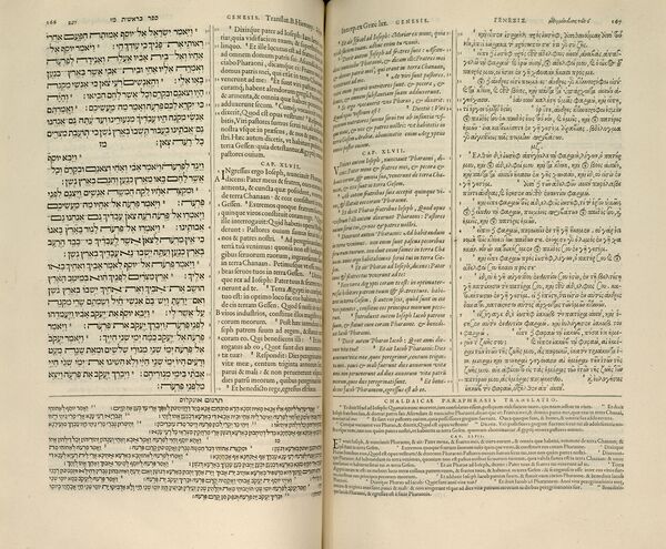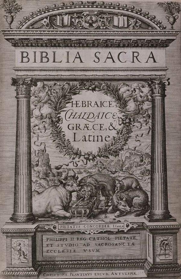 Причина обращения к Христофору Плантену — ведущему издателю Антверпена, объяснялась его успешными библейскими изданиями: в 1559 году он печатал латинскую Библию (на основе Лувенской редакции Гравиуса 1547 года), в 1564 году — греческий Новый Завет, и к 1566 году трижды печатал еврейский текст. В его библейских изданиях впервые широко применялась разбивка на стихи, предложенная в 1555 году Робером Этьенном[9]. Гийом Постэль в 1563 году предлагал ему обустроить еврейскую типографию, наподобие основанной в Венеции Даниэлем Бомбергом[9]. В те же годы он пытался реализовать многоязычную Библию на еврейском, латинском и фламандском языках; этот проект поддерживался Лувенским университетом, чьи учёные были готовы обеспечить редактирование текстов и написание научных комментариев. Однако такое издание было чрезвычайно дорогостоящим и не сулящим прибыли, поэтому после кончины одного из вдохновителей проекта Плантен отложил издание[10].