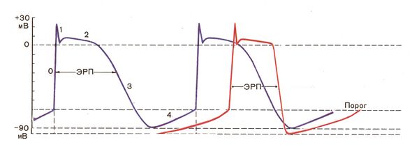 - Фаза 3 — конечная реполяризация. Как и фаза 1, генерируется исходящим калиевым током.