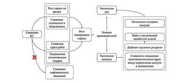 - управление инфляционными ожиданиями: стратегия «вербальных интервенций» и коммуникационной открытости, позволяющая сформировать у бизнеса и населения предсказуемые ожидания на долгосрочный период. Если бизнес и граждане доверяют прогнозам ЦБ и верят в стабильность цен, они не закладывают инфляционную премию в стоимость товаров и контрактов, что само по себе сдерживает инфляцию[14];