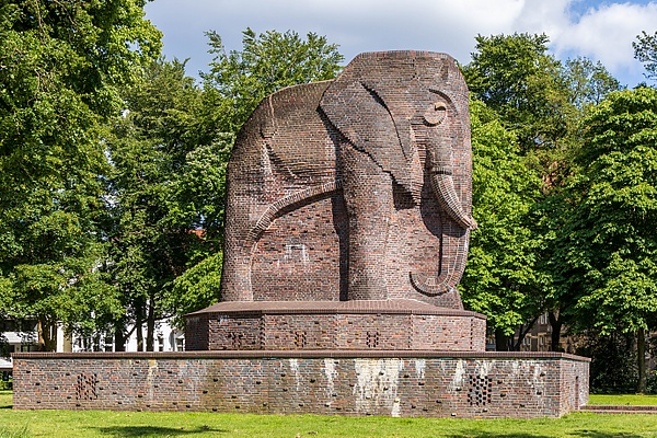 Монумент в форме слона, сложенный из тёмно-красного ольденбургского клинкерного кирпича, был сооружён в 1931—1932 годах по проекту скульптора Фрица Бена (1878—1970) архитектором Отто Блендерманом (1879—1944). Фигурное изображение слона переходит в двенадцатигранный пьедестал, который в свою очередь опирается на другой постамент размером 15×11,2 м и высотой 1,5 м[6]. Монумент с учётом постаментов имеет высоту 10 метров[2]. На длинных сторонах основания было по три окна для освещения полуподземного сводчатого помещения, в которое можно было спустится по шести ступенькам со стороны головы слона и войти через бронзовые ворота. В комнате на каменном столе лежала книга, в которой были записаны имена 1490 солдат, погибших в Первой мировой войне в немецких колониях[7][2]. В этом символическом изображении мемориала почитаемые воины лежали под африканской землей. Над входом в склеп можно было прочитать надпись «Наши колонии» (нем. Unseren Kolonien), выжженную на терракотовых табличках, а по бокам памятника также на терракотовых табличках были отмечены названия немецких колоний в Африке (Германский Камерун, Германская Восточная Африка, Тоголенд, Германская Юго-Западная Африка) и в Тихом океане (Германская Новая Гвинея и Германское Самоа), посвящённые немецкому колониальному экспансионизму. На обратной стороне основания монумента были два портретных медальона с изображениями бременского купца Франца Адольфа Людерица и генерала Пауля фон Леттов-Форбека. На церемонии открытия генерал произнёс одну из речей, его слова в основном были посвящены необходимости возвращения немецких колоний.