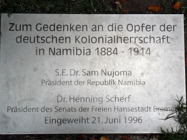 Оригинальный текст (нем.)[показатьскрыть]Die Stadtbürgerschaft begrüßt […] die laufende Renovierung und Umwidmung des Kolonialdenkmals (der Elefant an der Bürgerweide) zu einem Antikolonialdenkmal und die bereits ausgesprochene Einladung an Präsident Sam Nujoma zur Einweihung im Frühjahr 1990.