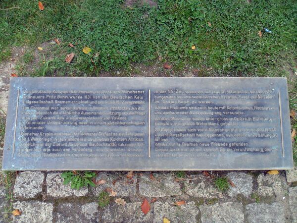 В 1920-х и 1930-х годах многие старые торговые фирмы выступали за восстановление немецких колоний и за возвращение немецкой торговли в Африку. Чтобы поддержать эту идею, сослаться на прошлое и возродить притязания на колонии в настоящее время, национальные силы выступили за создание соответствующего мемориала.