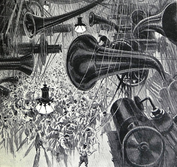 Тему бесчеловечных вариантов развития капитализма показал Джек Лондон в романе 1907 года «Железная пята», который зачастую рассматривается как первая подлинная дистопия в американской литературе и источник для оруэлловского «1984». По сюжету, в 1912—1932 годах в США прошли грандиозные восстания рабочих, после подавления которых установлена жесточайшая олигархическая тирания. Социализм был представлен автором как возвращение к изначальному христианскому учению, причём рабочих поддерживают мелкие предприниматели, массово разоряющиеся в результате наступления трестов. Иными словами, главный пафос антиутопии Лондона сводится к беспощадному подавлению свободного труда капиталом[78]. В 1909 году вышла в свет повесть «Машина останавливается» Э. Форстера, по замечанию Г. Клэйса, значительно более актуальная ныне — «в век смартфонов и предпочтения видеочатов личному общению». В мире Форстера технологический прогресс достиг своего завершения: поверхность Земли стерильна, а население обитает в подземных городах, имея возможность добраться по пневматической трубе или дирижаблем в любое место в самый короткий срок. Любые человеческие потребности удовлетворяются простым нажатием кнопки, даже медицина полностью автоматизирована. Всем обществом управляет великая Машина, осуществляющая круглосуточный контроль за каждым. Брак строго регламентирован, младенцев после рождения осматривают, но самых сильных и здоровых уничтожают как непригодных к существованию в мире Машины, дети воспитываются в государственных учреждениях, где им прививается социофобия. Общительность, душевная близость и привязанность почти исчезли. В дальнейшем эти мотивы получили развитие в творчестве Олдоса Хаксли[79]. Томас Мойлан также полагал, что «Машина останавливается» — это один из первых текстов, автор которого сознательно сосредотачивался на ужасах будущего, а не на возможных аспектах искупления, которое оно несёт. Тем не менее его мировоззрение основывалось на романтическом гуманизме[80].