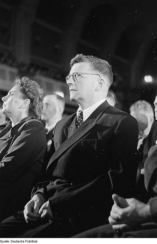 Во Дворце культуры происходит плановое собрание на тему «Реализм и формализм в музыке». Ведущий последовательно предоставляет слово для выступления трём выдающимся ораторам, присутствующие в зале бурно приветствуют их речи.