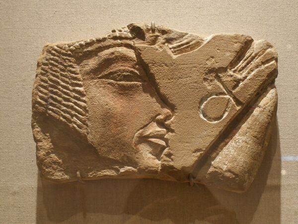 Солнечный диск Атона, главное божество в правление фараона Эхнатона (XVIII династия), изображали в виде солнечного диска с простирающимися от него лучами, которые заканчивались кистями рук[11], иногда протягивающими символ жизни анх[12].