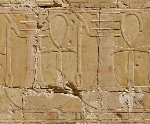Значение этого знака и его формы давно вызывает споры среди египтологов и других исследователей. Это даёт почву для возникновения множества теорий. На данный момент существует также большое количество паранаучных, вольных и необоснованных исследованиями трактовок.