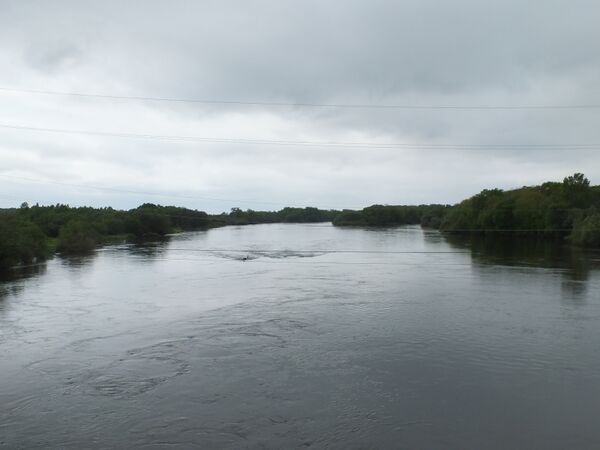 Громадное количество воды, выносимое обоими протоками, не могло вместиться в русло реки. Её вздымало кверху большим пузырём, который всё время перемещался и подходил то к одному, то к другому берегу реки. Вода точно кипела и находилась в быстром вращательном движении, разбрасывая по сторонам белую пену.