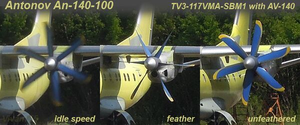 Винт АВ-140 — изменяемого шага, реверсивный, флюгерный, с гидравлическим управлением шагом, производства ОАО «НПП Аэросила» (Ступино). Диаметр 3720 мм.