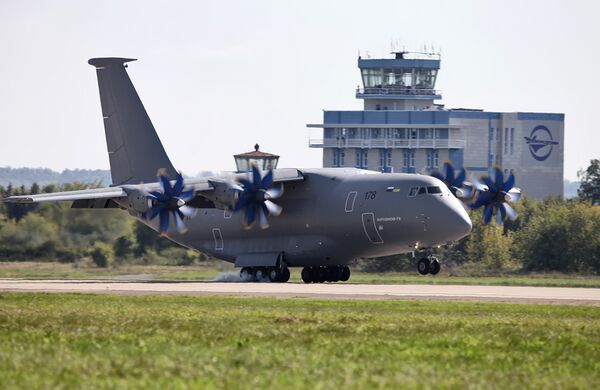 В лётных испытаниях самолёта доказана возможность работы самолёта со слабоподготовленными грунтовыми площадками длиной 600 метров, даже если на борту самолёта при этом будет находиться до 20 тонн груза. Получение заданных характеристик обеспечивается, в первую очередь, уникальной силовой установкой — двигатель Д-27 (Запорожье) и винтовентилятор СВ-27 (производства АО «НПП Аэросила», Ступино, Россия); попытки создания подобного рода силовых установок предпринимались различными двигателестроительными фирмами мира, но реально осуществлен только этот проект. Взлётная мощность силовой установки 14 000 л. с. За счёт очень высокой степени сжатия воздуха в компрессоре (к = 30) достигается высокая экономичность (при максимальных взлётных весах часовой расход топлива на четыре силовые установки — 3,5—4 тонны).