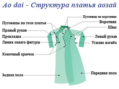 Аозай с высоким воротником, двумя полами, подшитый шёлком и сеткой, обычно украшается цветочной, орнаментальной или сюжетной вышивкой. Аозай вместе с широкими штанинами и национальной шляпой нон является одним из символов современного Вьетнама.