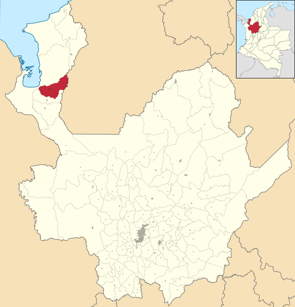 Город расположен на севере департамента Антьокия в 336 км от его столицы Медельина. Абсолютная высота — 30 метров над уровнем моря[1].