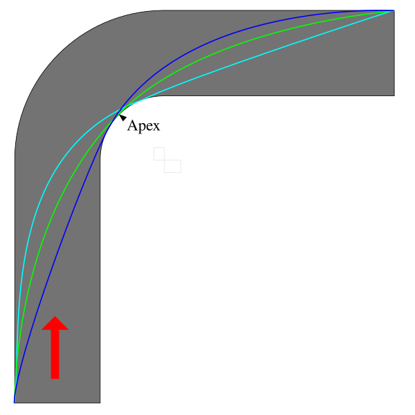 Кроме того, апексом называются длинные быстрые повороты, в которых автомобиль не сбавляет (или незначительно сбавляет) свою скорость.