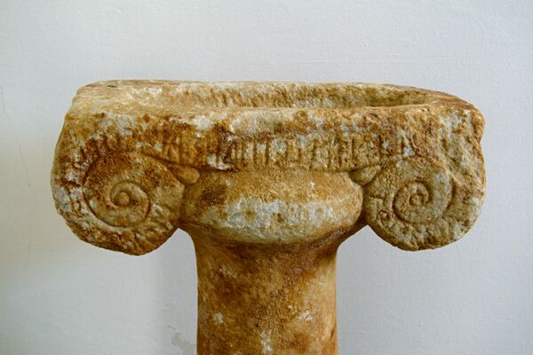 Изначально Аполлон был неодушевлённым фетишем, который в виде обелиска, камня или колонны помещали перед входными дверями. Эти предметы «уличного» или «дверного» Аполлона в сознании людей являлись источником полезных для человека действий[14]. Из растений, с которыми связывали Аполлона, выделяют лавр, кипарис, дуб и некоторые другие[15].