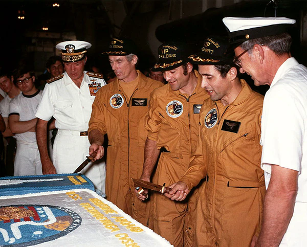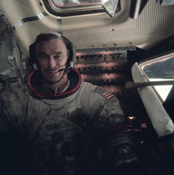 - Роналд Эванс — пилот командного модуля (1-й космический полёт)