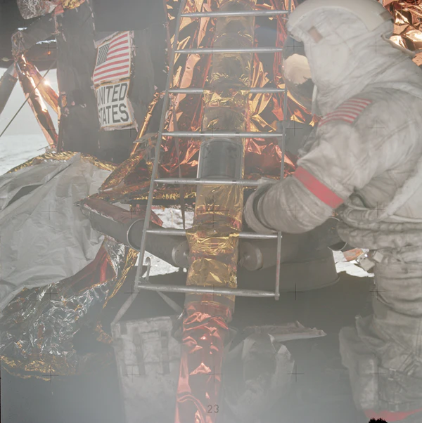 Я на тарелке опоры. И, Хьюстон, сходя на поверхность в Тавр—Литтров, мы бы хотели посвятить первый шаг «Аполлона-17» всем, кто сделал его возможным.
