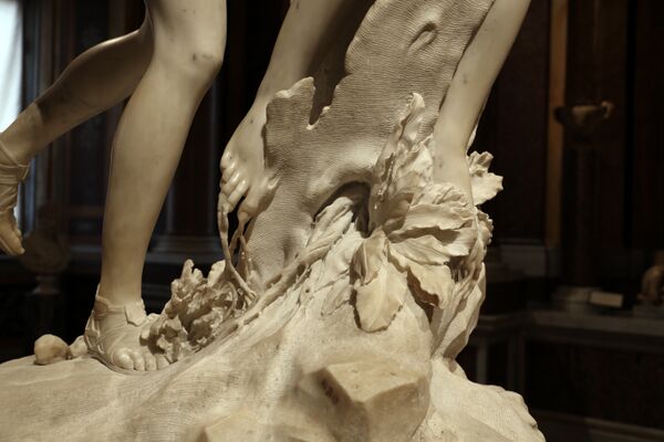 Закончив «Давида» в 1624 году, Бернини смог возобновить работу в апреле того же года, воспользовавшись помощью одного из учеников своей мастерской, каррарского скульптора Джулиано Финелли, который выполнил самые тонкие части работы: листву и корни лаврового дерева, в которое превращается, согласно тексту Овидия, нимфа Дафна[3].