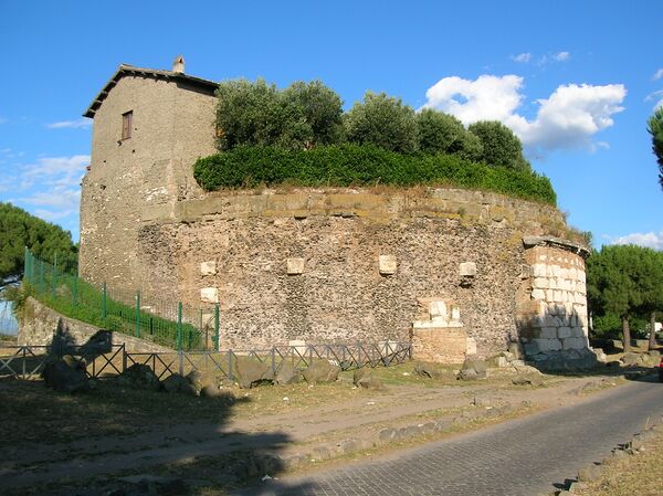 - Гробница Цецилии Метеллы (лат. Caecilia Metella) — монументальный мавзолей Цецилии Метеллы, дочери консула Квинта Целия Метеллы Кретика, около 50 года до н. э. Гробница в XI веке использовалась в оборонительных целях графами Тускулумскими и в 1299 году римским дворянским семейством Каэтани превращено в башню крепости;