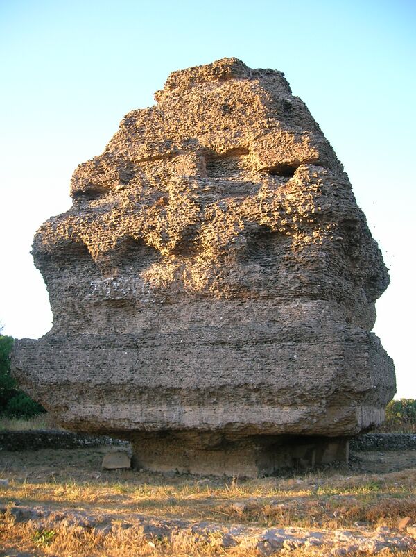 - «Гробница Сенеки» в виде столба простой кирпичной кладки, полностью лишённого декоративных фрагментов. Монумент, известный как гробница Сенеки, в память о философе и воспитателе Нерона, владельце виллы на IV миле Аппиевой дороги[16];