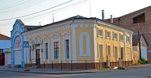 На фасаде дома установлена мемориальная доска «Памятник истории. Аптека 18 века. Основана в 1777 г. отставным врачом Изюмского гусарского полка нежинским греком М. Лигдой».