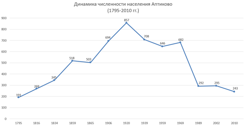 - 1920—857 жителей, 174 двора