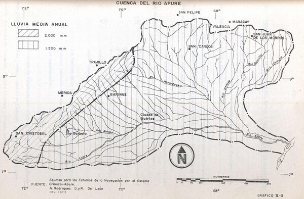 Протяжённость реки Апуре составляет 1580 километров, площадь бассейна 147 000 км², средний расход воды ≈ 2000 м³/с[1].