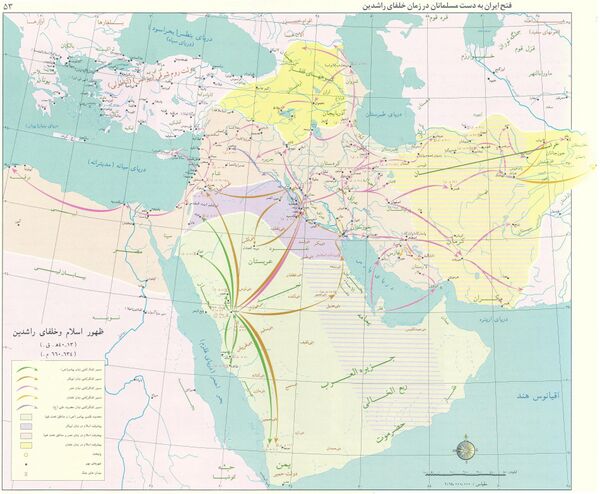 - Morony, M. (1986), ʿARAB ii. Arab conquest of Iran, Encyclopaedia Iranica, Vol. II, Fasc. 2, pp. 203–210, <http://www.iranicaonline.org/articles/arab-ii>.