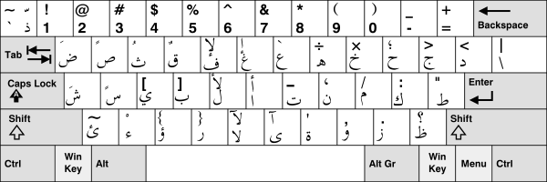 С арабскими раскладками клавиатуры ситуация такая же несогласованная, как и с кодировками: хотя с 1987 г. существует стандартная раскладка ASMO-663 [1], используются многочисленные нестандартные раскладки. Наиболее популярна сейчас раскладка, используемая в IBM OS/2 и Microsoft Windows. Различные несовместимые с ней и друг с другом раскладки использовались в компьютерах MSX, в арабской версии MS-DOS, в системах на основе Linux. Для «ноутбука за 100 долларов» также разрабатывается новая раскладка клавиатуры, несовместимая с уже существующими.