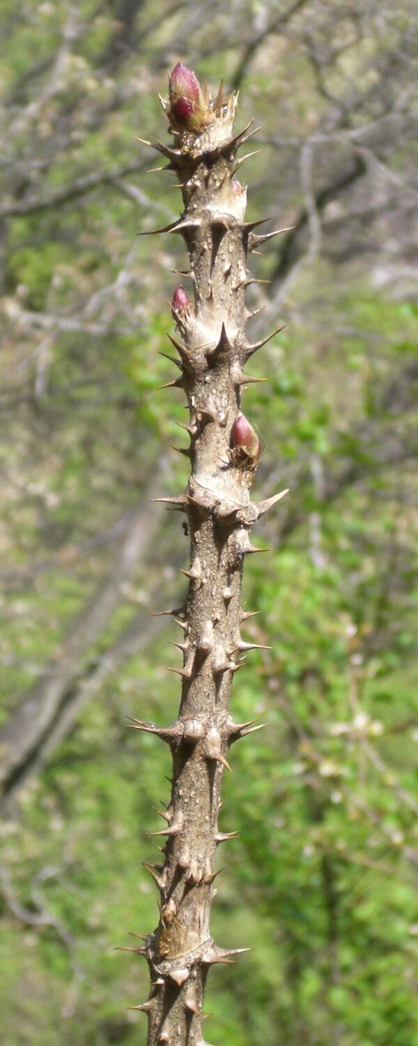 Небольшое дерево, 1,5—7, до 12 метров высотой, с прямым стволом диаметром до 20 см. Черешки листьев и ствол усажены многочисленными шипами.