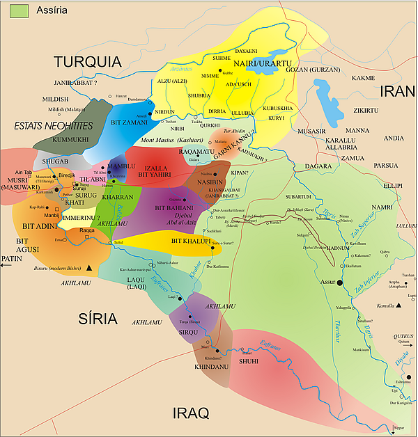 С приходом Новоассирийской империи регион неоднократно подвергался вторжениям, начиная с середины IX века[20], и окончательно перешёл под контроль ассирийских царей во второй половине VIII века до н. э.[21]. Большое количество жителей региона было депортировано в Ассирию, Вавилонию и другие страны[22]. Было найдено несколько стел с именами царей этого периода, например, стела Заккура VIII века. Ассирийцы и вавилоняне сами приняли месопотамскую форму арамейского языка, известную как имперский арамейский в VIII веке до н. э., когда Тиглатпаласар III сделал его лингва-франка своей огромной империи. Неоарамейские диалекты, на которых до сих пор говорят коренные ассирийцы и мандеи в северном Ираке, юго-восточной Турции, северо-восточной Сирии и северо-западном Иране, происходят от этого языка[22].