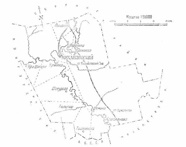 - Михайловского района Екатеринбургского округа Уральской области (1923—1930 г. г.) с созданием Уральской области (Свердловского округа Уральской области (1924—1930 г. г.) с переименованием Екатеринбургского округа в Свердловский округ);