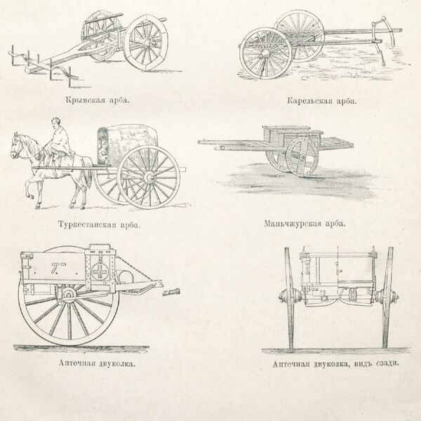 Длинная телега на четырех колесах с железными осями арба или гарба[6], была весьма удобна как для возки тяжестей вообще, так и в особенности для уборки хлеба. Цена хорошей арбы в южных губерниях Российской империи — около ста рублей.